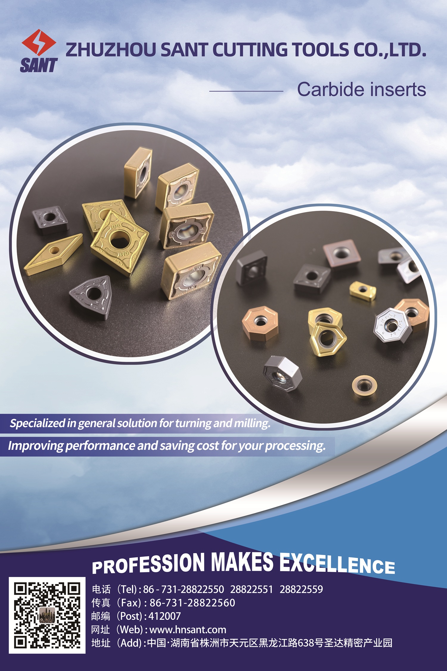 Zhuzhou Sant Cutting Tools Co., Ltd is a modern joint. stock company specializing in the designing, producing and selling of CNC cutting tools and cemented carbide tools. Our company mainly produces various cnc turning tools, milling tools, drilling tools, cnc inserts, tooling systems andvarious cemented carbide tools.