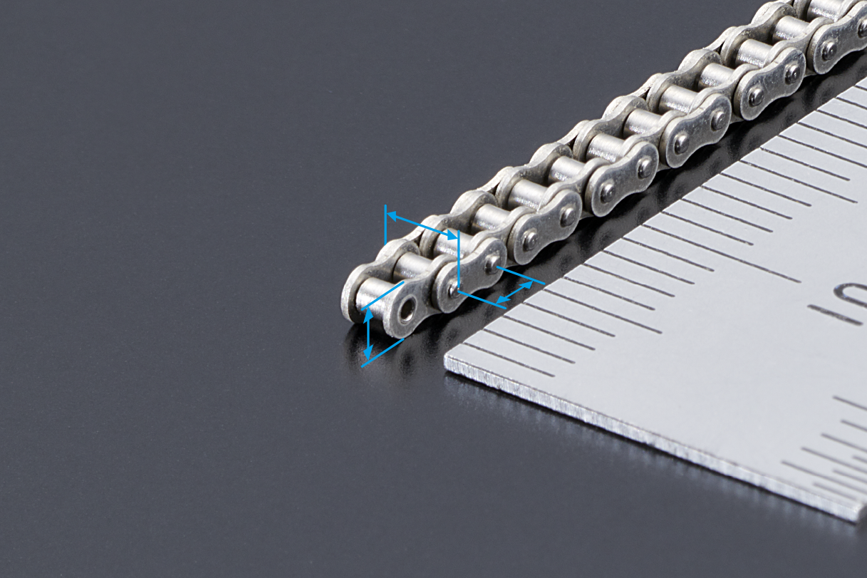 In addition, it is also possible to reduce the size of conventional chains, contributing to the miniaturization of various applications. With a chain pitch of just 1.905 mm, it is recognized as the world’s smallest roller chain. Despite its extremely small size, it achieves a tensile strength of 0.36 kN, ensuring both strength and reliability.