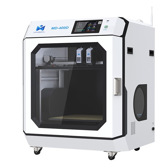 MINGDA MD-400D is an industrial-grade FDM 3D printer featuring an IDEX dual-extruder system, enabling dual-material, dual-color, duplication, and mirror printing for higher productivity. With a 400 × 400 × 400 mm build volume, stable linear guide structure, automatic bed leveling, and reliable resume-printing function, it delivers consistent accuracy, efficiency, and stability—ideal for functional prototyping, tooling, and small-batch production.