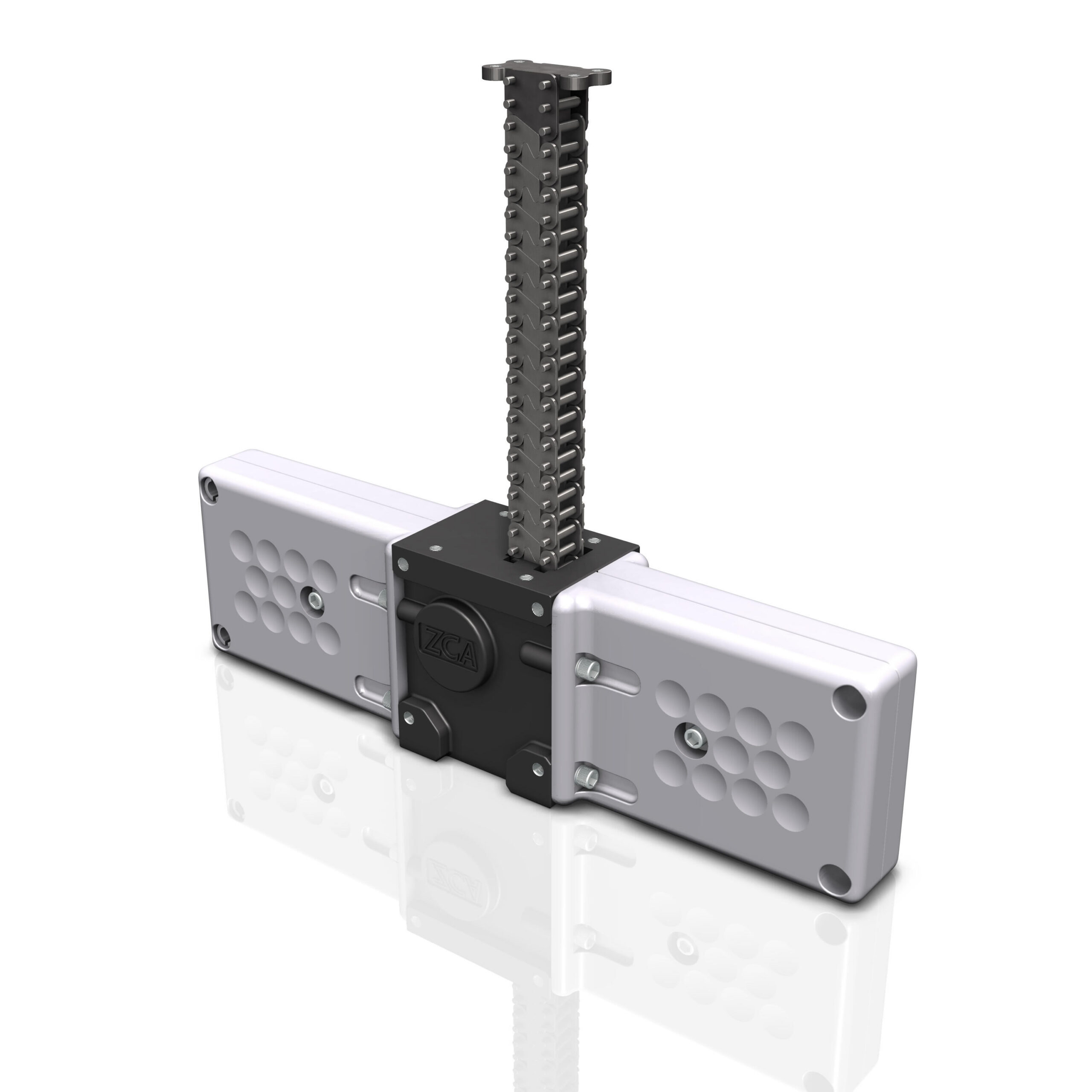 Tsubaki Zip Chain Actuator is a rigid chain actuator with two strands of chain that interlock in a zipper-like fashion to form a single, strong column that enables push/pull operation over long strokes.