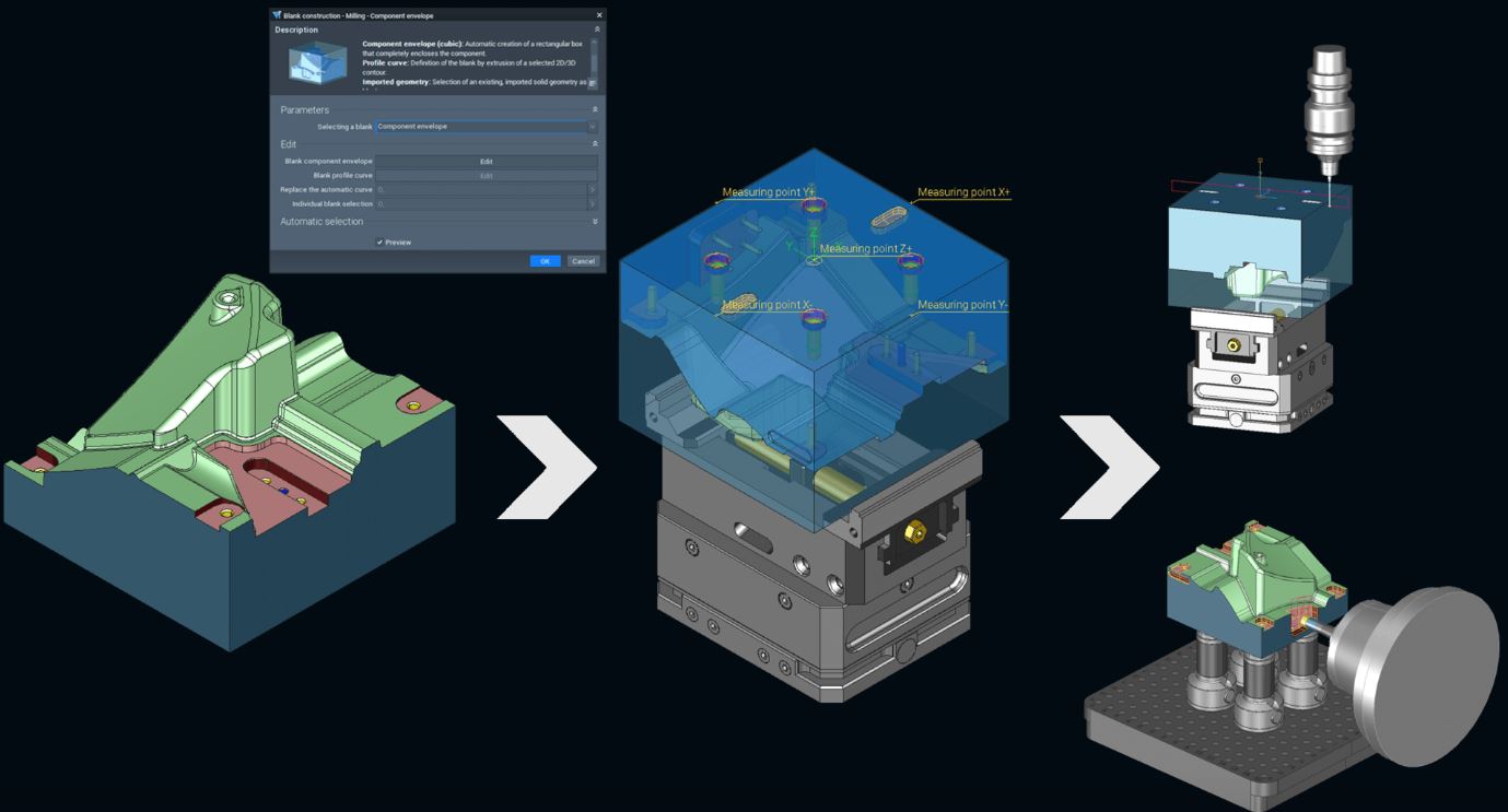 They are also enthusiastic about the ability to flexibly adapt the CAD/CAM process at any time. Users are guided through individual process steps by a wizard and can intervene as necessary. The user can quickly and easily update the entire manufacturing process using parametric functions.”